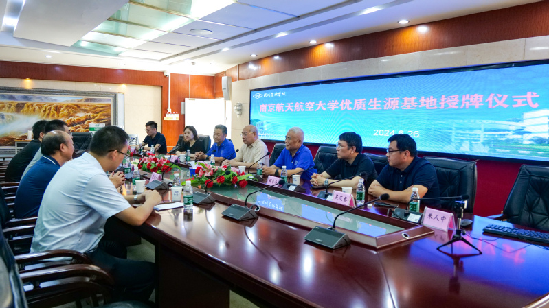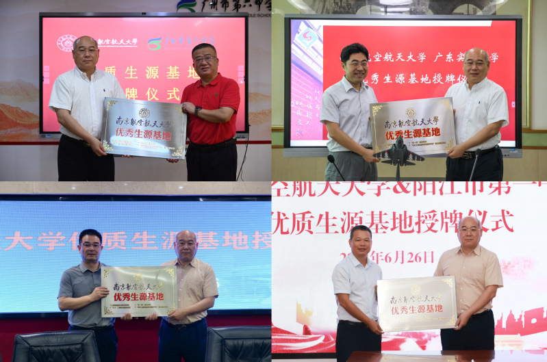 黄志球代表学校向四所高中分别授予“南京航空航天大学优质生源基地”标牌。