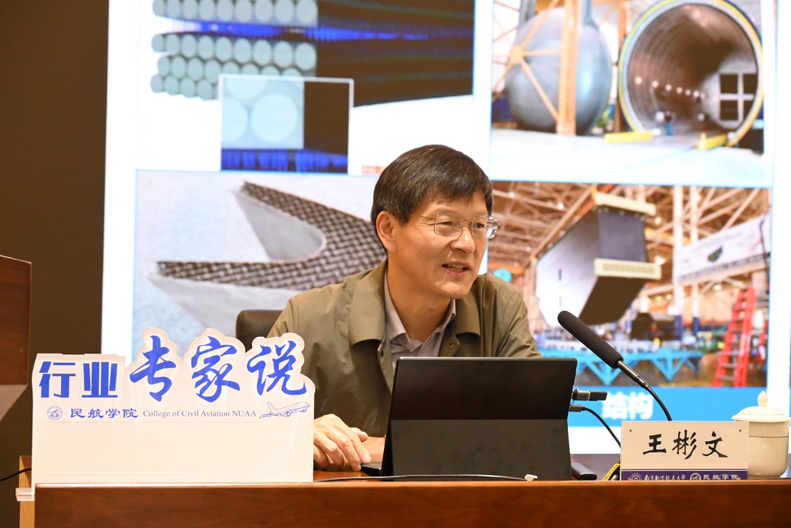 王彬文以强度的广义概念为切入点,从空天飞行器强度基本内涵和专业技术发展趋势出发,通过“大强度、新强度、数字强度”三个维度系统讲解在理论方法创建、关键技术攻关、实验系统研制、重大型号应用等方面的创新成果和工程实践。他鼓励南航大民航学子积极投身先进飞行器强度领域事业,以推进三航领先创新为己任、以拼搏奋斗之姿激扬青春,迎难而上、使命必达。