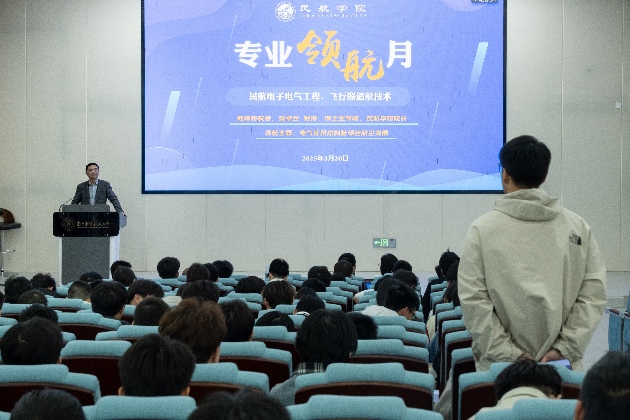 为深化专业认知教育,培育学生创新精神,3月20日,bob体育官网 在天目湖校区牧星楼T2108报告厅举办“教授会客厅”活动,院长张卓然教授以《电气化技术赋能绿色航空发展》为题作专题报告,bob体育 党委副书记王艳,民航工程系党支部书记陆中、系主任丁萌、系副主任宫淑丽等教师代表与bob体育 2023级、2024级相关专业300余名本科生共同参与本次活动。