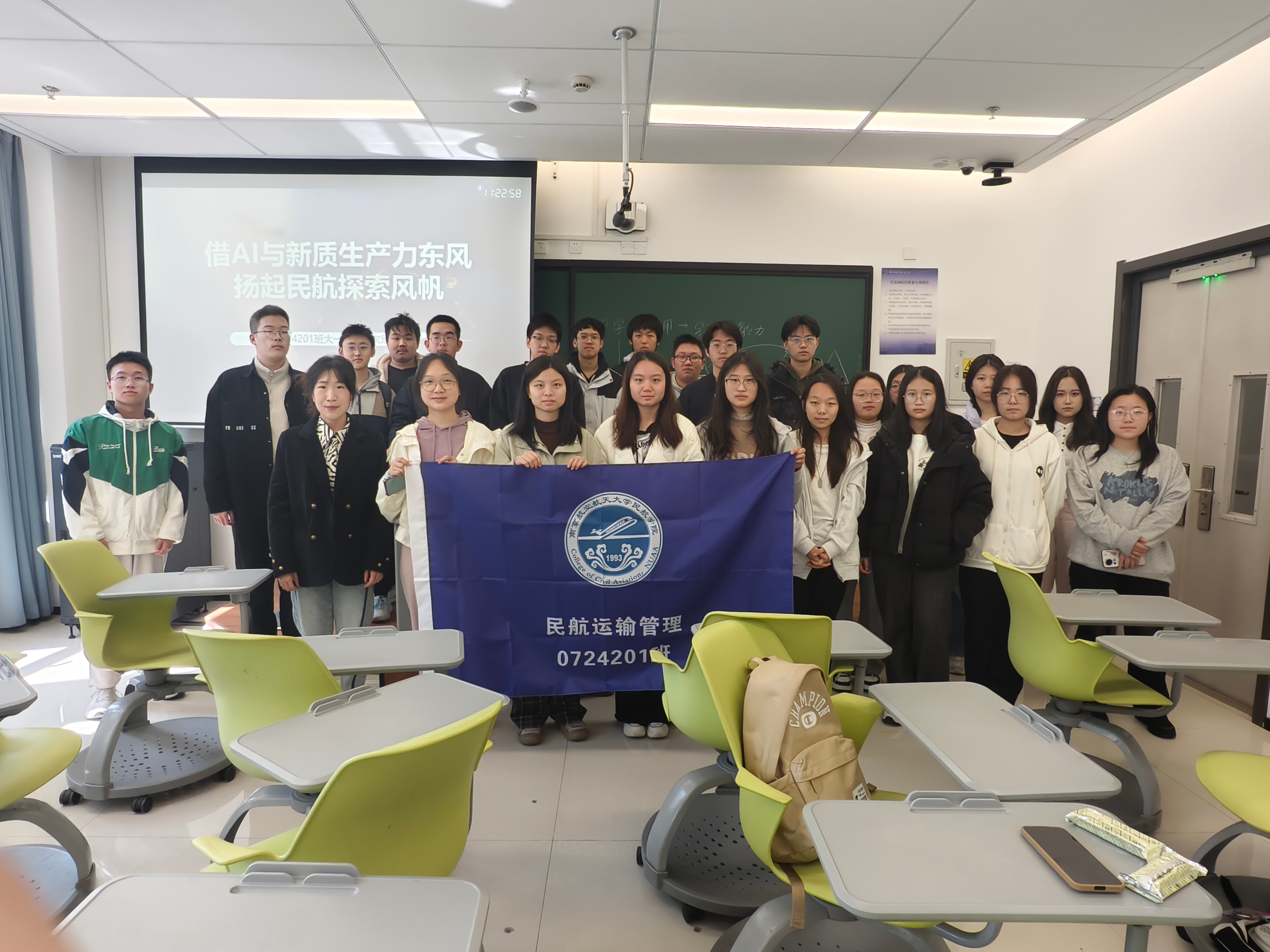 班会上,师生通过新媒体等资源进一步学习领会新质生产力的内涵特征,直观感受新人工智能、大数据等新兴技术重构产业生态的澎湃浪潮。张皓瑜立足智慧民航发展趋势,建议同学们广泛收集行业信息、科学分析研判,绘制个性化成长路线图;要善用校院两级优质学习资源与多元实践平台,锤炼专业核心竞争力。
