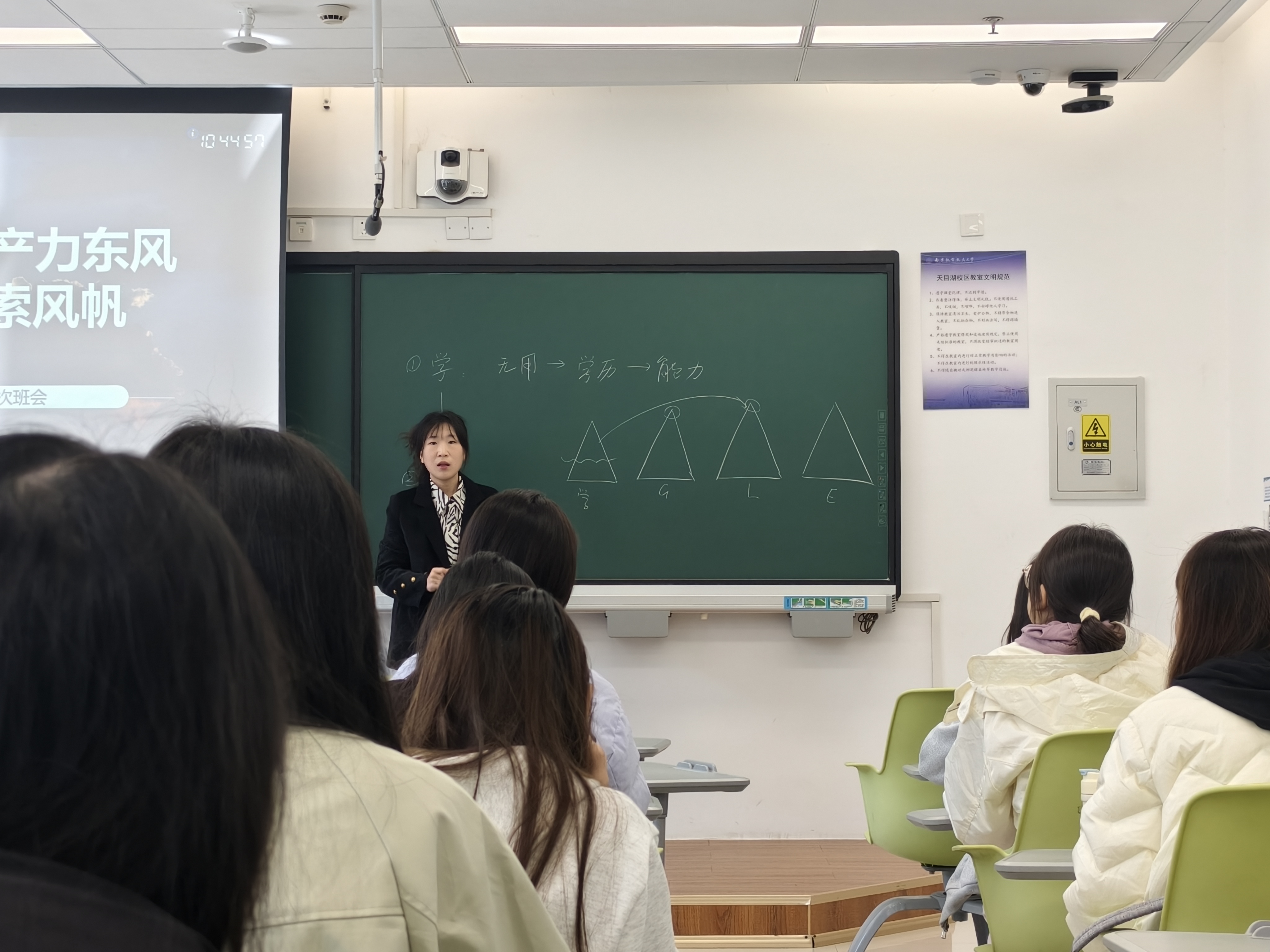 此次班会立足学生发展困惑,既破解学生成长迷思,也引领青年学子以动态发展的眼光规划学业生涯,通过多维指导为青年学子成长精准导航、有效激发学生的学习内驱力,指引同学们合理规划大学四年,在努力拼搏中收获属于自己的成长与成功。
