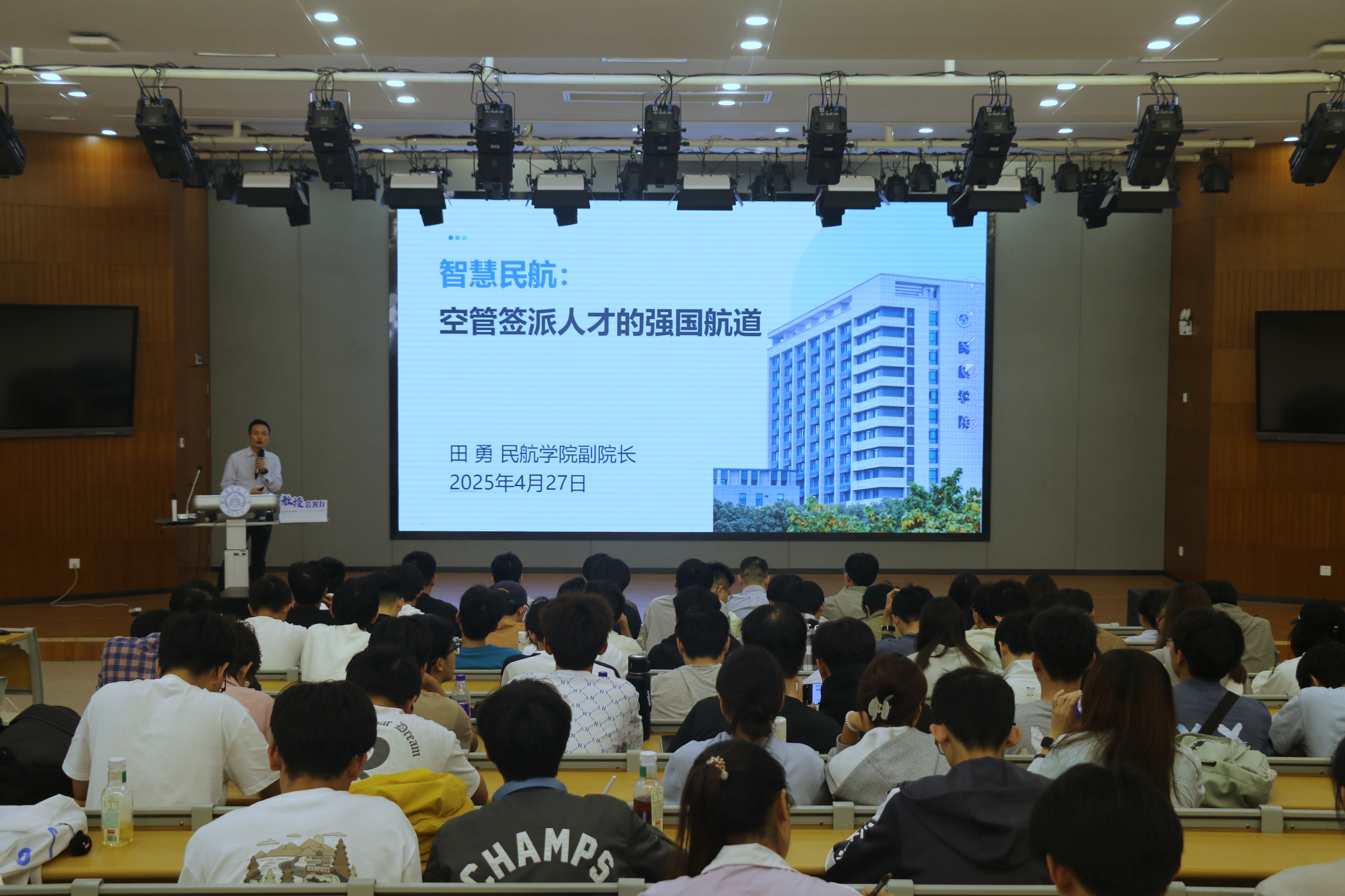 田勇立足教学科研实践,系统阐述学校在空管与签派领域的优势,详细介绍空管、签派两个专业方向的工作内容、就业去向和晋升通道。他结合智慧民航建设和低空经济新业态,深度剖析行业对人才核心竞争力的新要求,勉励同学们珍惜在校学习实践机会,夯实专业理论基础,强化实践能力培养,把握行业发展机遇。