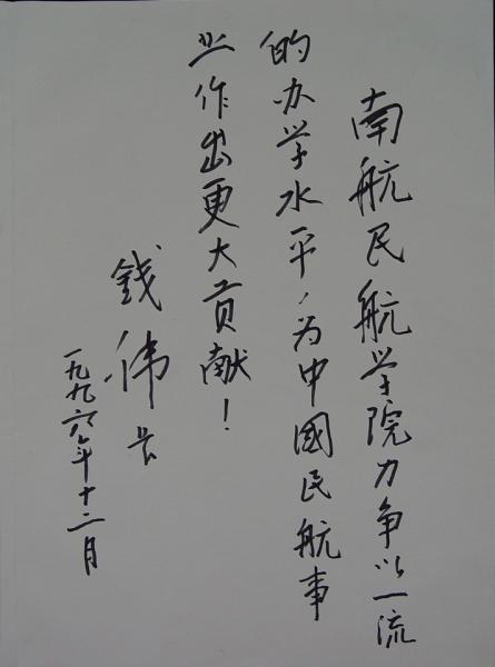 长钱伟长为bob体育官网 题词:“南航bob体育官网 力争以一流
